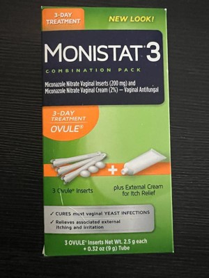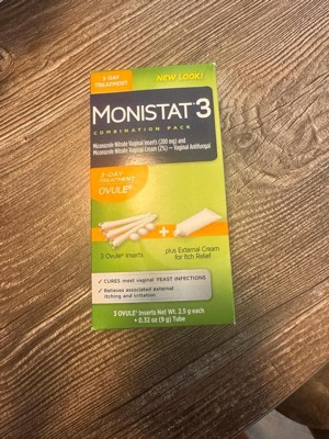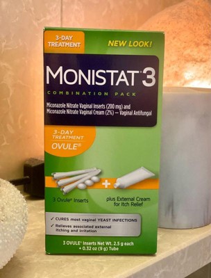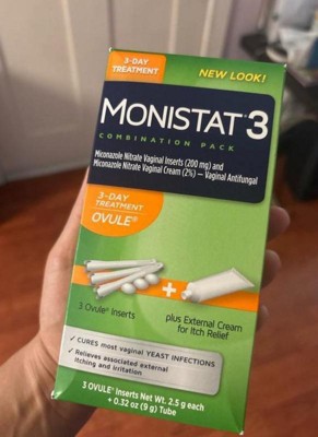 Monistat 3-Day Yeast Infection Treatment is the number one gynecologist-recommended brand for over-the-counter treatments for yeast infections.* The original strength formula of Monistat 3-Day treatment for yeast infections is available in cream, ovule, and vaginal suppository formats for your comfort. For overnight yeast infection treatment so you can get back to you, you can rely on Monistat 3 Day Treatment. Monistat cures most yeast infections and relieves symptoms 4x faster than the leading prescription pill.** Clinically tested by gynecologists, this Monistat 3 Day Treatment ovule contains miconazole, an antifungal medicine, to cure the infection at the source. This yeast infection treatment kit also includes an external anti-itch cream. Feel better faster at home with Monistat. If you do not feel some relief within 3 days, or complete relief within 7 days, stop using the product and consult your healthcare professional. *ProVoice Survey, US/OB-GYNs from 1/1/24-12/31/24 **Based on clinical study of MONISTAT 1-Dose Ovule Combination Pack versus fluconazole 150 mg tablet.