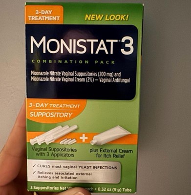 [This review was collected as part of a promotion.] The monistat 3 day treatment is the best product out there. After using for 3 days all symptoms gone. The application is easy to insert and the product is cream base with no scent. It’s a very affordable product with simple packaging.