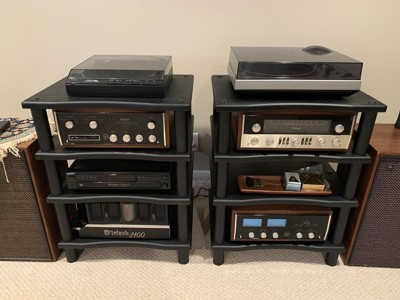 I bought two of these since they?re higher up and I?m having trouble bending over and my system is complicated so they?ve enabled me to split it up so I don?t have to bend down nearly as far. They were also inexpensive and very rigid and well-made and I might get a third one if my system grows. The multiple racks leaves me flexible which I also like but the could look sharper although they aren?t ugly, just neutral which is fine by me.