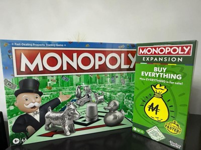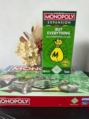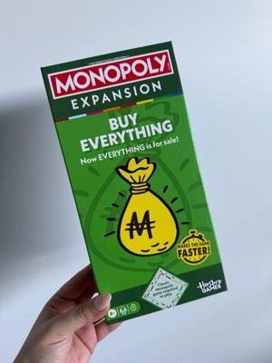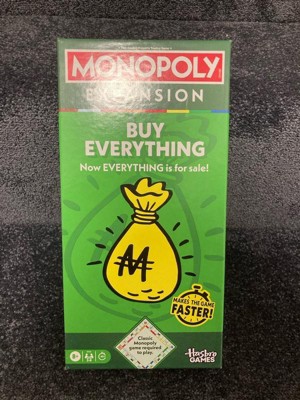 - A FRESH WAY TO PLAY THE CLASSIC MONOPOLY GAME: Spice up the Monopoly game and play in less time with this Monopoly Buy Everything Expansion! THIS IS AN EXPANSION, NOT A STANDALONE GAME. (CLASSIC MONOPOLY GAME REQUIRED TO PLAY. Sold separately)