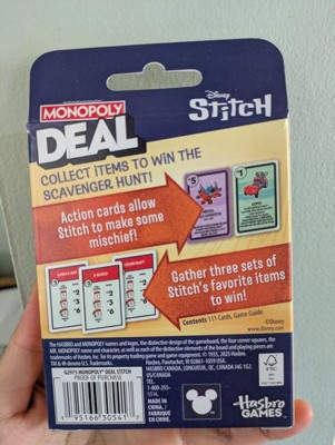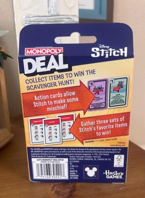 - INSPIRED BY DISNEY’S STITCH: The Monopoly Deal: Disney Stitch Edition card game combines the fast fun of the Monopoly Deal game with characters and themes inspired by the adorable alien from Lilo & Stitch