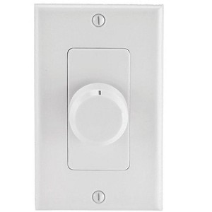 This is a rotary-type wall plate volume control for speaker systems with power ratings of up to 100 watts per channel and impedance ratings of 4 to 16 ohms. This rotary control can be set to one of twelve positions, including the minimum (off) and maximum volume settings. The wall plate mounts into a standard single-gang, low-voltage wall bracket (not included) and has inputs and outputs for one pair of stereo speaker wires (4 input connections and 4 output connections). It can accept speaker wire in sizes from 14 to 16 gauge and provides a frequency response range of 35 Hz to 20 kHz (+0/-2db) at the full power rating of 100 watts per channel.