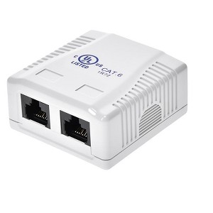 Surface mount CAT 6 box for when in-wall box and wire installation are not possible. A clean and simple solution for network expansion. 2 Cat 6 ports. Box is durable plastic, white in color. Cat 6 is written in small blue letters on face of box. Comes with double sided adhesive tape to mount the box to the wall, or you can use the three screws provided to screw it down to baseboard, window sill, trim, etc. Jacks are included, non removable. Wire connections are easy. You'll use a punchdown tool type 110 or a Krone punching tool. There's plenty of room to work. Installation instructions are included in package. Box has a slit in the back side to allow the wires to enter the box for flush moutning. Box top snaps on and off for easy access to wires. Use it with stranded or solid wire, any gauge.