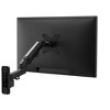 This easy-adjust monitor mount frees up space on your desktop by mounting your display on the wall instead of taking up space on your desk. The fully-adjustable gas spring arm provides a wide range instant adjustments, similar to the desktop version. It works well with workstations that are next to a wall and also works for non-traditional work spaces where there may not even be a real desk to support a monitor. This mount provides full adjustability for monitors, including vertical and horizontal tilt, height level adjustment, and portrait or landscape orientation rotation. The extra arm segment provides additional length and a wider range of screen position options.