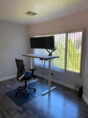 My husband and I both have this base for our home office spaces. We love the sit-stand desk!