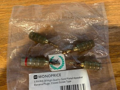 Monoprice High Quality Gold Plated Speaker Banana Plugs – 5 Pairs – Closed Screw Type, For Speaker Wire, Home Theater, Wall Plates And More