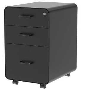 Monoprice Round Corner 3-Drawer File Cabinet - Black With Lockable Drawer - Workstream Collection