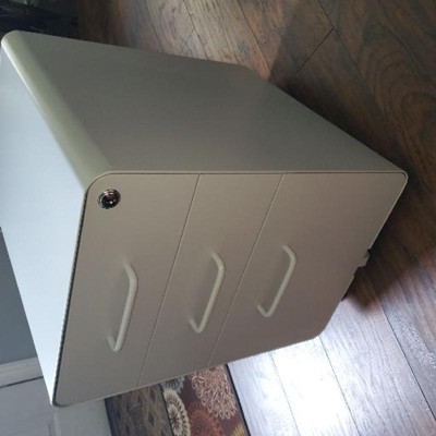 Upgrade and customize your desk with this file drawer. Get a professional storage solution, even if you don't have built-in cabinets and drawers. It is perfect for sit-stand desks, computer workstations, and open office setups. This drawer features a rounded corner design and construction, so it is stable and durable, with no flimsy sides, unstable corners, or sharp edges that plague older basic drawers. It is made of powder-coated steel for a robust construction and a durable finish. Casters make it easy to move and reposition the drawer, without removing the contents. The bottom drawer fits files and folders, while the two spacious upper drawers are perfect for items that need to be within easy reach. An organizer tray is included to help with small objects. All drawers are lockable for security. The drawers sit on quality drawer glides for smooth and quiet operation.