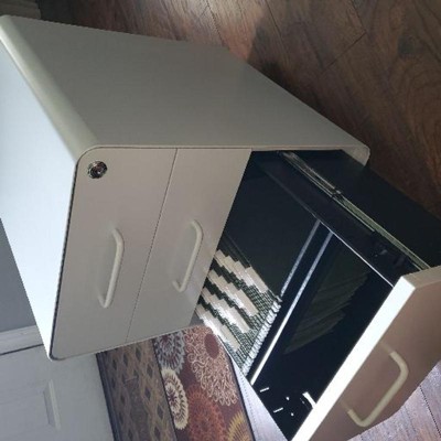 I was looking for a small metal mobile filing cabinet with lock for all drawers and this was perfect bought in color gray picture does not do it justice. Comes with 2 keys. Already assembled was a plus.