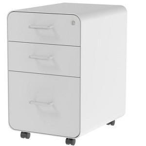 Monoprice Round Corner 3-Drawer File Cabinet - White With Lockable Drawer - Workstream Collection