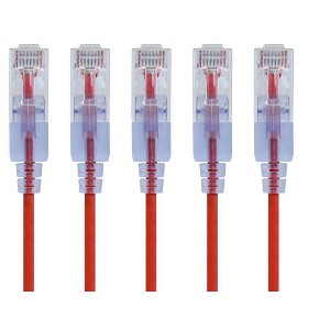 Monoprice SlimRun Cat6A Ethernet Patch Cable - Network Internet Cord - RJ45, Stranded, UTP, Pure Bare Copper Wire, 30AWG, 2ft, Red, 5-Pack