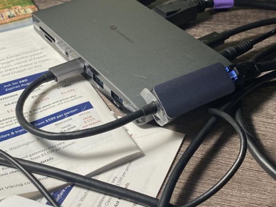 Monoprice USB-C to HDMI VGA USB 3.0 Gigabit RJ45 SD Card USB-C Data Port USB-C PD Dock Adapter, 100W, 2-Port, 4K@30Hz, with Folding Type-C Connector