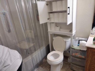 - Over-toilet storage cabinet total weight capacity: 45lbs