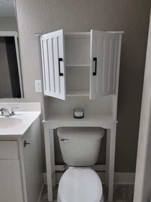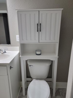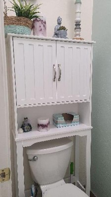 [This review was collected as part of a promotion.] I love my Monroe Spacesaver. I have white cabinetry, doors, and trim in my bathroom, so this cabinet goes perfectly. It also fits over my toilet without any issues. It is a perfect fit. There are several different positions where you can place the shelf. I chose to put the shelf in the middle. There is quite a bit of space to store items. It took me three hours to build it. I am a slow builder. I built the entire cabinet and brought it to my bathroom and wondered how I was going to put it over the toilet. Hint: You need to remove the rear bottom cross bar. I put the cabinet in place and then I reattached the bottom cross bar. Then I fastened it to the wall. Fastening it to the wall makes it sturdy. I recommend you do that. It looks elegant instead of having a blank wall, and you get to have more space to put stuff. I really love this cabinet.