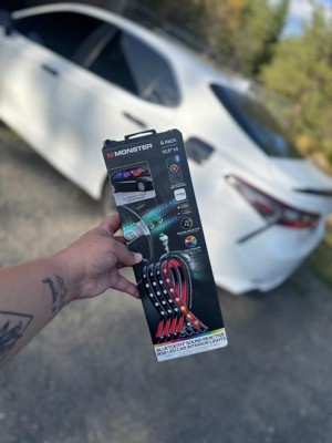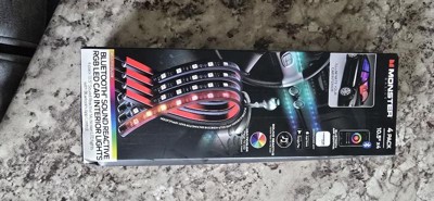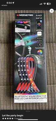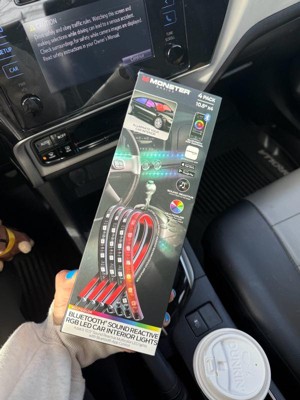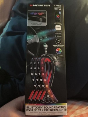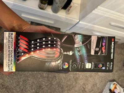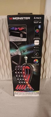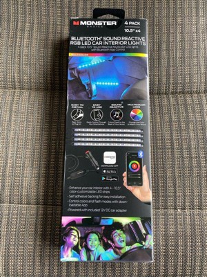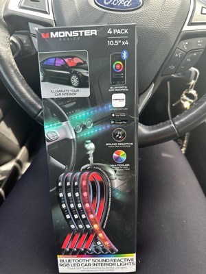 Monster 4pk Bluetooth LED Light Strips for Car: Wireless Automotive Novelty Lights, USB Powered, Black