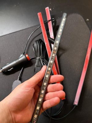 [This review was collected as part of a promotion.] The lights didn’t stick as expected in the back of my car. The back portion of my car didn’t have a good surface to stick them to. They have an adhesive back that is supposed to stick to the interior. You can change the colors manually or sync them to the Bluetooth to play with music. I’m not a fan of having wires exposed. It makes my car look messy. These would be good for a young driver or someone who is into sports cars.