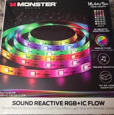 Monster 5m RGB IC LED Light Strip with Flow Feature Indoor: USB Powered, Multicolor, 110 LEDs, 4 Settings, Tape Lights