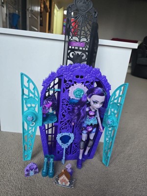 - Insert the talisman at the base of the closet, then glide it up like a zipper to unveil Twyla doll in all her ghoulish glory! Repeat the reveal again and again for nonstop fun