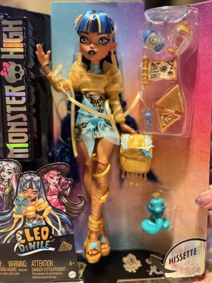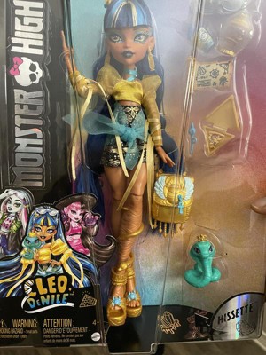 - Monster High Cleo De Nile doll looks royally radiant in a gore-geous outfit! She comes with her pet cobra Hissette, as well as accessories fit for a pharoah