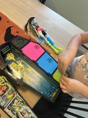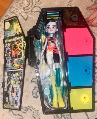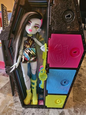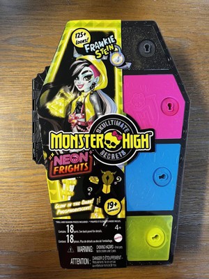 [This review was collected as part of a promotion.] We love the Monster High collection, and the skulltimate secrets line is no exception. Frankiestein is rockin with new neon frights fashion and a spooky wardrobe to store everything in. Love the details and attention to design.