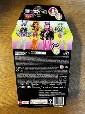 adult collector review: Originally, I didn’t like this doll but I got them as a gift. I fell in love with them! The neon colors fit Frankie so incredibly well, and I love how all the SS3 dolls computers have references to the first generation of Monster High. They come with again, 2 great outfits good for restyling and display, but also for play. The poly hair kinda sucks but otherwise, I’d recommend this to anyone!