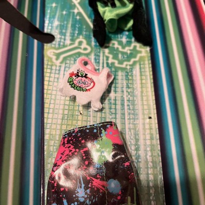 [This review was collected as part of a promotion.] My daughter loves Barbie but I am happy to say she still had room in her playtime for this latest release from Monster High of Ghoulia Yelps. The doll is neon bright and comes with a bunch of fun accessories that your child can carry in the accompanying coffin shaped carrying case (some accessories even glow in the dark). The coffin has 4 compartments each of which has a color change key to lock it. I think my daughter had as much fun locking & unlocking the little containers as she did playing with the doll itself. If your child loves dolls but may be interested in more than the pink world of Barbie, this latest line from Monster High is a great deal of fun. It is also great for parents since it doesn't leave any mess since it all fits in the case when they are done playing.