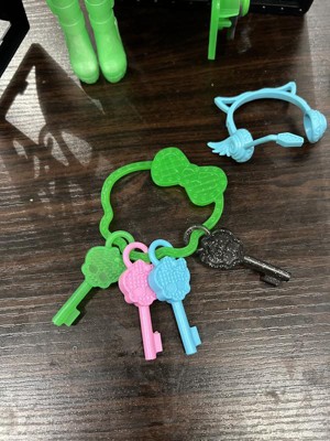 [This review was collected as part of a promotion.] This doll was an addition to an existing collection. It was fun to use each key and open all of the surprise accessories. The keys all fit into each lock making for a versatile product. Each section of the locker is large enough to hold most items and adds to the level of fun. The doll is well made but the shoes are somewhat difficult for small fingers to take off.