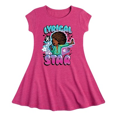 Monster High Holographic Logo Fit & Flair Cap Sleeve Graphic Dress - Heather Fuchsia - 5T