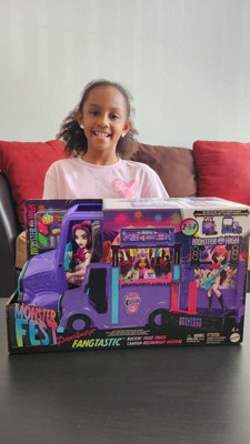 [This review was collected as part of a promotion.] We got this monster high food truck for our 8 year old daughter who loves Barbies and monster so much and she was ecstatic about it. It is much bigger than expected and she has so much fun with it. Definitely would buy again