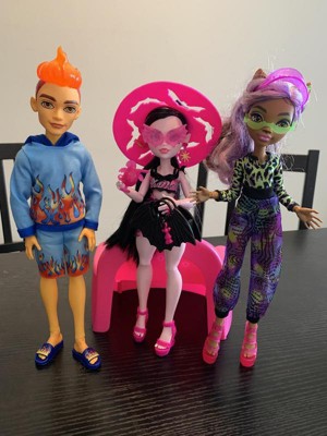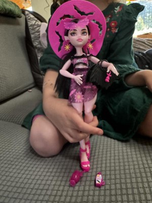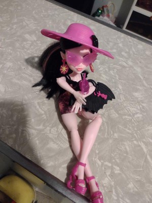 [This review was collected as part of a promotion.] Always been a Monster High fan, and so glad they came back. I really enjoy the different body styles to these dolls and like that Draculaura comes with a little swim cover up. My only complaint is how many ties hold the dolls in. My daughter didn't want to wait and ended up ripping the hat because of a tie. Also enjoy that the beach bag can hold her little extras