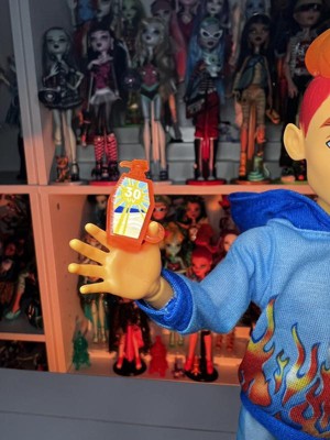 [This review was collected as part of a promotion.] This Monster High doll on vacation is really cool! He comes with an outfit with shoes, a tote bag, sunscreen, sunglasses, and a cool drink to keep him cool. Or is it a fiery drink? Hmm. The doll is posable. I think his clothes are amazing and the whole package makes me want to go on a vacay! The kids love him. They enjoy dressing him and taking his shoes on/off. Oh, and the tote bag has an opening. His sandles and sunblock fit inside! You can try to put the sunglasses in it too!