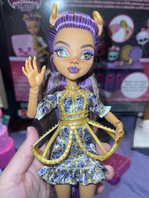 [This review was collected as part of a promotion.] Clawdwen Wolf is stunning. She comes with about 20 different sealed items for baking. She has everything from cupcake cake pan, the decorating tube and flowers for decorating the cakes . Her purple hair is so beautiful.