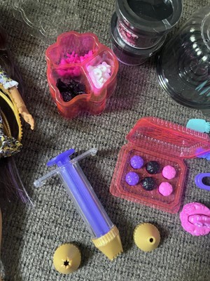 [This review was collected as part of a promotion.] This is a fun Monster High themed set with doll and also fun baking accessories. It also came with some playdoh/slime to make the cakes extra. You could play with it without those though for people who want to keep things less messy. The little cakes had a ton of pieces you could add to accessorize with.