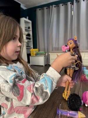 [This review was collected as part of a promotion.] Scary Sweet Birthday fun! This held interest for quite a while and came with so many accessories for endless cake options! The moldable dough is easily worked with and piped with the included fittings. This toy also comes with many plastic bats, strawberries, roses, and whipped cream blobs to add to your cake. This was very easy for little hands to be creative with and pretty easy to clean up. The doll that is included, Clawdeen, comes with beautiful brown and purple hair, golden shoes, and an outfit to match. She is poseable in multiple areas of her arms and legs. Her legs, arms, and face have small wolf hair moldings which was a very nice touch for a werewolf doll.