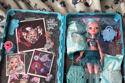 - Inside the luggage case lurks a sea monster and 19 surprises… Step one? Use the key hidden in the front of the case to open the door and reveal Lagoona Blue doll in a fan-sea resort outfit!