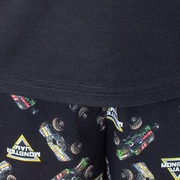 ALLOVER PATTERN ON PANTS - The shorts in this pajama set has an allover pattern of the Monster Jam logo and the 3 monster trucks mentioned above. It has an elastic-stretch waistband for a comfortable fit. These are magnificent for indoor wear and even lounging around outdoor during the warmer months!