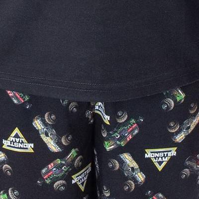 ALLOVER PATTERN ON PANTS - The shorts in this pajama set has an allover pattern of the Monster Jam logo and the 3 monster trucks mentioned above. It has an elastic-stretch waistband for a comfortable fit. These are magnificent for indoor wear and even lounging around outdoor during the warmer months!