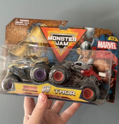 Monster Jam Marvel Thanos vs Thor Diecast Vehicle 1:64 Scale - 2pk