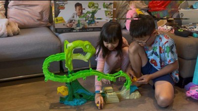 [This review was collected as part of a promotion.] This product was supplied as a promotional item. Man, the Monster Jam Mini Jams Cobras Crazy Escape Playset is a total blast! This 28-inch jungle track comes with two cool little trucksThunderROARus and JCB Digatron, both 1:87 scale and decked out with gem vibes. You load em up, and they zoom through loops, flipping and crashing in the best way possible. The more trucks you add, the crazier it gets! Theres this hidden lever that pops open a side exit for a surprise escape, which my kids went nuts for. It holds six mini trucks for easy cleanup, which is a win for parents. The set does come with two mini trucks! Only bummer? You need 4 C batteries, and they dont come with it. Also, putting it together might need a grown-ups help for the littler kids. Still, its tough, fun, and perfect for any kid obsessed with Monster Jam stunts. Totally worth grabbing for some epic playtime!