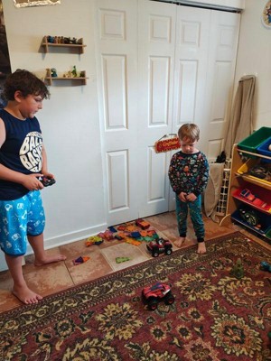 [This review was collected as part of a promotion.] My son loved this toy! I mean, how could he not - it combines 2 of his favourite things! Which is why I gave it a decent rating. The issue with the toy is the functionality, its very difficult to steer using the controls and more often than did not move the car at all. If it was hard for me to use, it was even harder for my son to use. It would go forward and backwards a bit but after a few times it just stopped working, even after changing the batteries. We have purchased remote control trucks like this in the past from the same company and have always had this problem. I think the functionality of the toy needs to be improved before a child can use it easily.