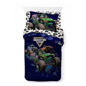 Gear up your little monster truck fan’s bedroom with this Monster Jam twin sheet set, featuring a flat sheet (96" x 66"), fitted sheet (75" x 66"), and pillowcase (20" x 30"). Made from 100% soft polyester, it’s durable, cozy, and perfect for everyday use. Machine wash cold and tumble dry low for easy care. Featuring bold, action-packed designs, this set brings excitement and comfort to every bedtime.