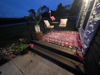 Love this outdoor carpet. Makes the area so cheerful and complements the gray furniture. Good quality.