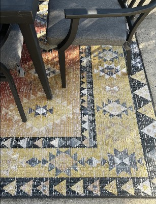 Very bright and vibrant rug, really dresses up our new deck. Love the colors and pattern.