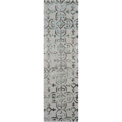 The rug features a tasteful gradient pattern that displays a range of motifs, including diamond shapes and intricate detailing that provides a sense of depth and texture. The color palette is a refined mix of grey and charcoal, presenting a versatile scheme that complements a wide array of interior styles, from contemporary to traditional.