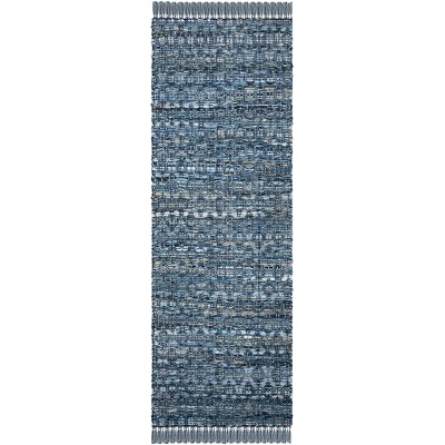 Take pride in the handcrafted charm of this beautiful runner rug, knowing that its unique pattern and construction reflect a heritage of skilled artistry. Make a statement with a piece that is as functional as it is decorative, and let the rich blues and artful composition of this runner create a serene and inviting atmosphere in your home.