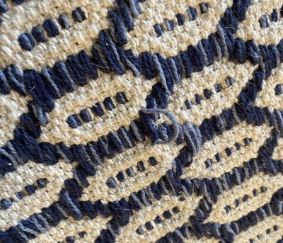 Love the pattern but it picks, will not stay in place even with furniture on it, crinkles up also.