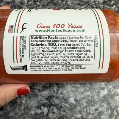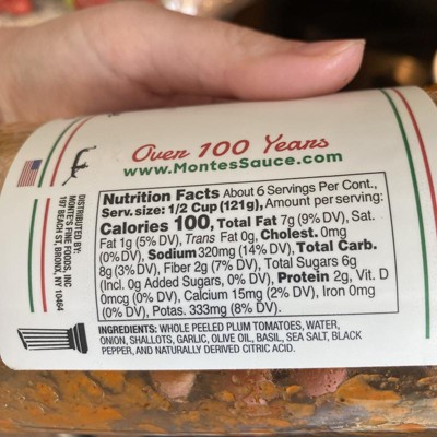 Monte's Original Tomato and Pasta Sauce is our 100+ year old original family recipe, cooked in small batches with a smooth consistency to perfectly coat your pasta or serve as a base for your favorite tomato based recipe. Made with the best available California grown restaurant-grade 100% whole peeled plum tomatoes. Born, prepared & produced in NY. Cooked in small batches to ensure consistency. Fresh ingredients only, 100% clean label, certified kosher, and non-GMO. Free of: additives, artificial flavors, concentrates, gluten, dairy, tree nut, egg, soy, fish, shellfish & sesame.