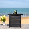 Transform your outdoor area with the sleek Monterey Patio Outdoor Bar unit in elegant black. Crafted from solid wood, this piece combines style with functionality, adding a sophisticated touch to your patio or garden. Its modern design complements various outdoor settings, providing both durability and timeless appeal. Whether hosting a gathering or enjoying a quiet evening, this outdoor addition offers the perfect blend of beauty and practicality. Elevate your outdoor experience with the Monterey Patio Outdoor Bar, a statement of tasteful design and lasting allure. Embrace outdoor living with a piece that truly stands out.