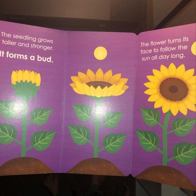 In this unique learning book, elements on each page are textured for greater interactivity, and the book has two fun gatefolds--one that flips down to reveal a plant's roots, and another that folds out to show a sunflower following the sun.