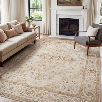 MontVoo Vintage Floral Non-slip Washable Rug Beige